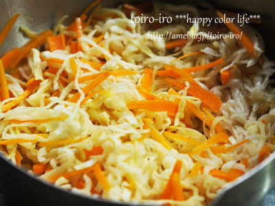 鍋にサラダ油を入れて弱火にかけ、人参を炒める。