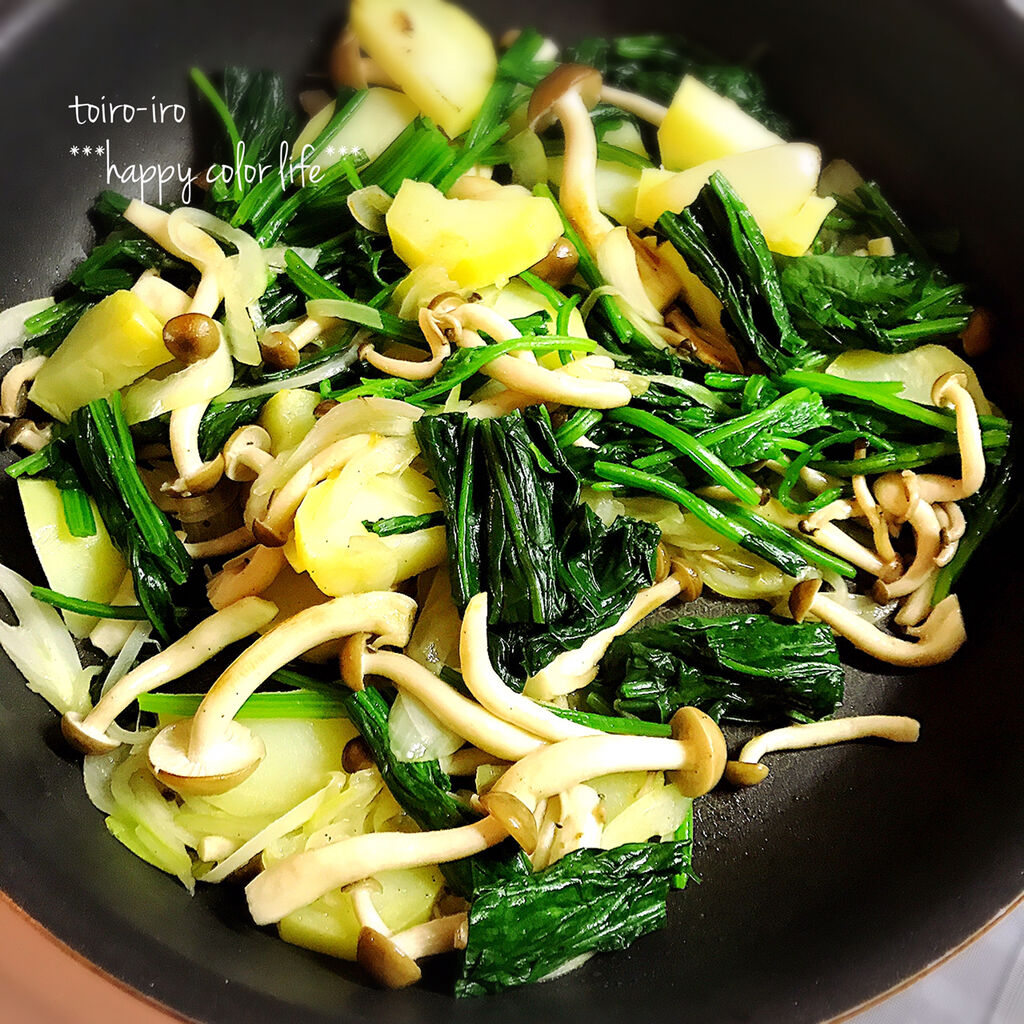 ほうれん草やしめじと共にオリーブオイルで炒めて軽く塩コショウ!