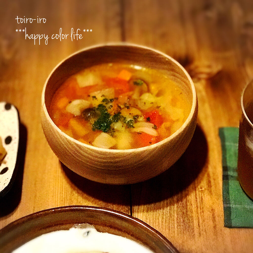 野菜たっぷりのミネストローネと共に。