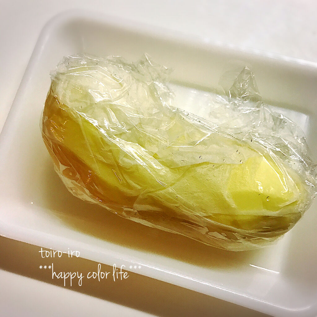 ジャガイモは皮をむいてキッチンペーパーで包んで濡らします。