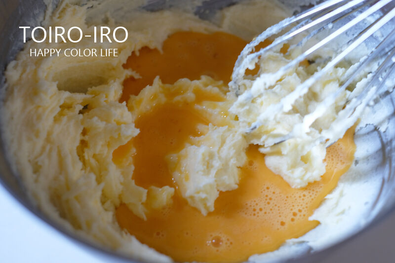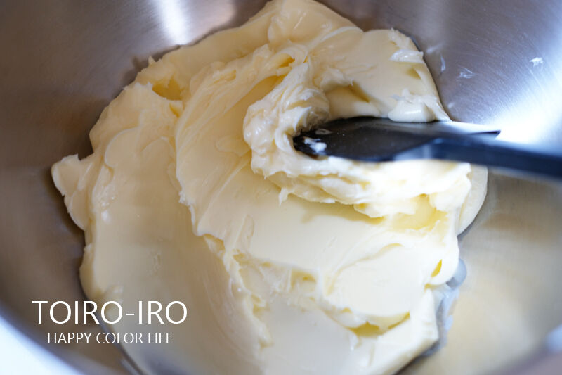 バターは先にゴムベラでボウルに押し当てるように潰しながら練っておくと作業しやすくなりますよ^^