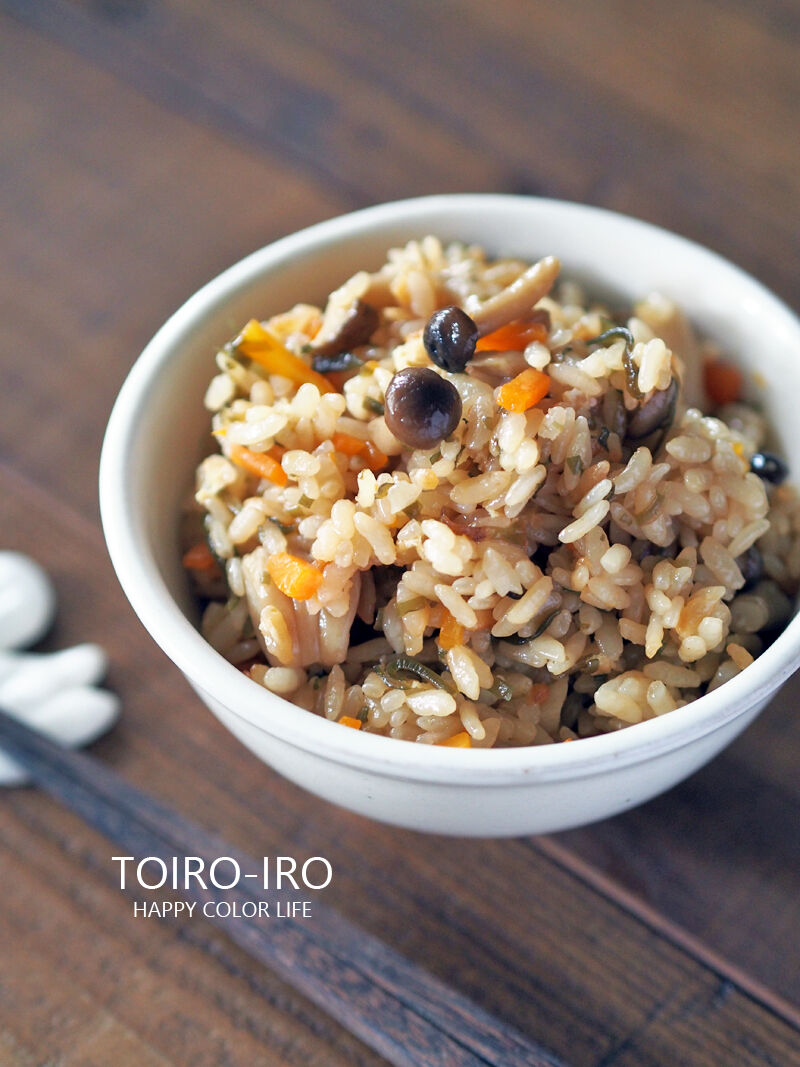 簡単にお出汁の効いた炊き込みご飯が完成です!!