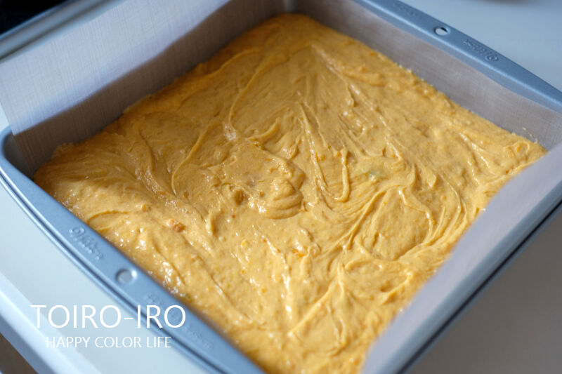 倍量で仕込んだので、型もパウンド型ではなく、大きなスクエア型にしました!
