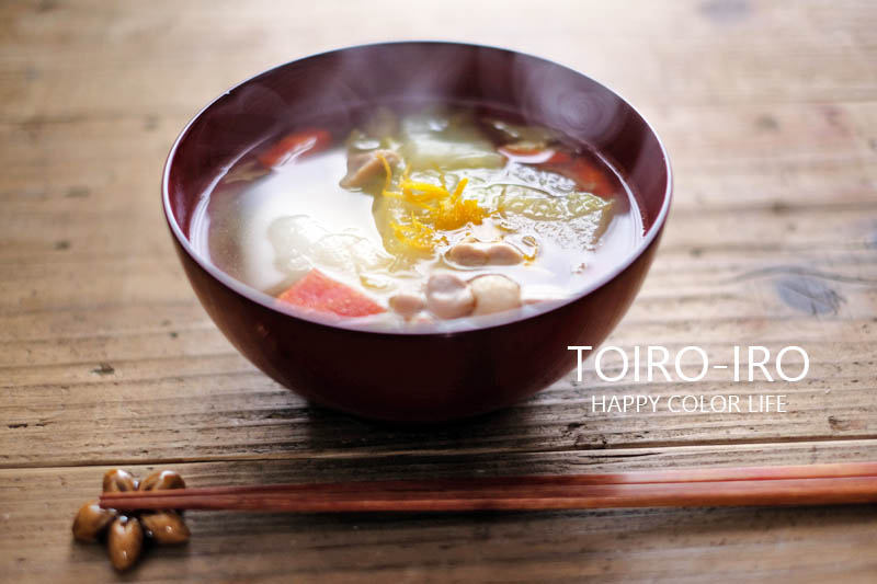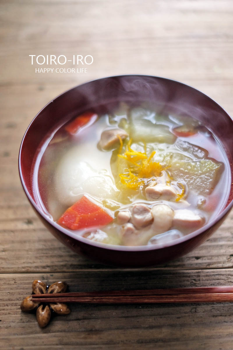 我が家のお雑煮は、白菜や大根を鶏肉のお出汁で柔らかく煮たもの。