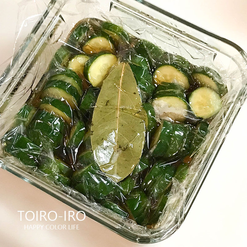 カットしたきゅうりを、鍋で一煮立ちさせたピクルス液で漬けるだけです。超簡単。