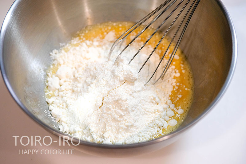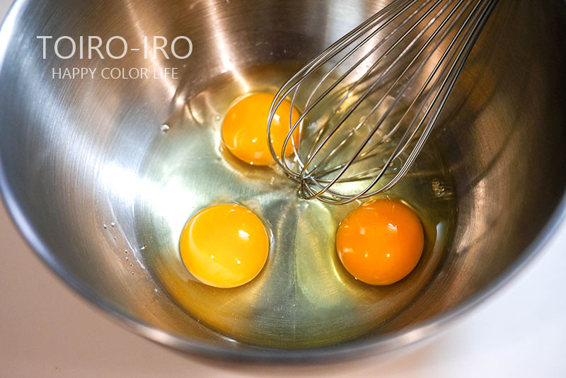 ミックス粉以外に用意する材料は卵とハチミツと水だけ。
