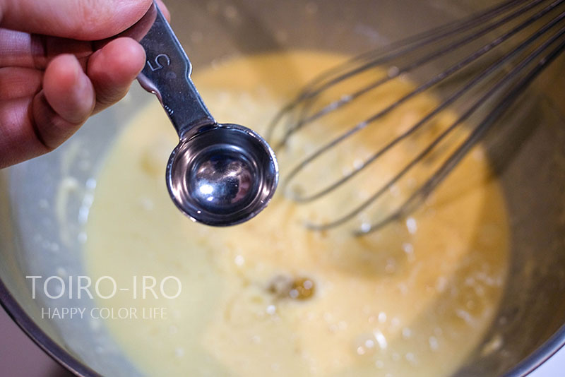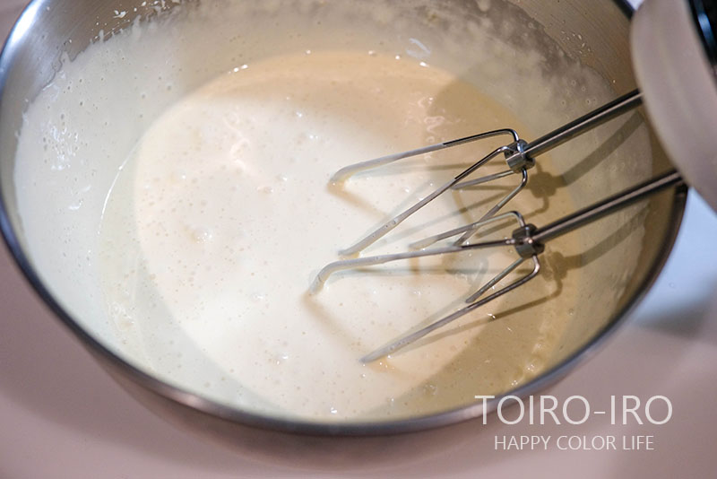あとは電動の泡立て器(ハンドミキサー)の高速で3分ほど泡だて。