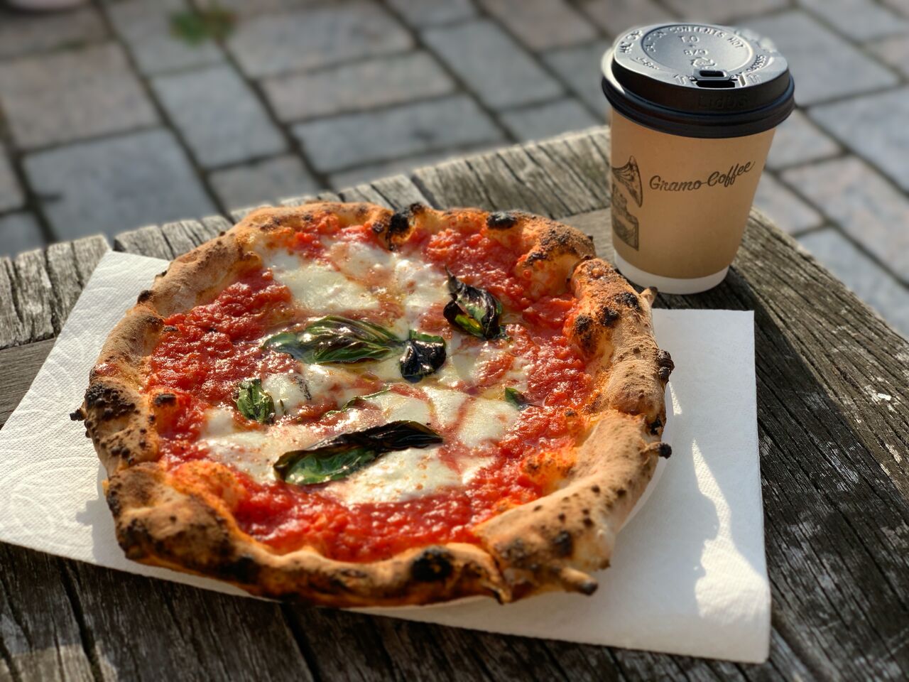 グランマーケットでは、大好きなピザ屋さんの焼きたてピザ食べてからショッピング~!