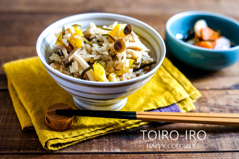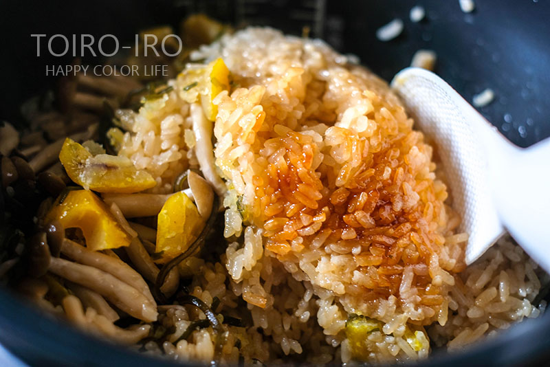 トイロノートの今日のレシピは、栗の甘露煮としめじの塩昆布おこわです。