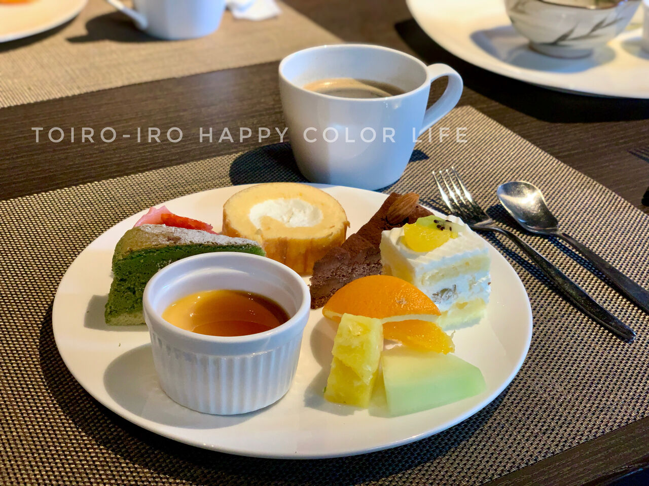 ケーキに焼き菓子、冷たいデザート、フルーツ、お腹いっぱいになるまで食べました。笑