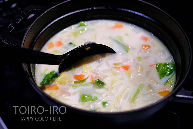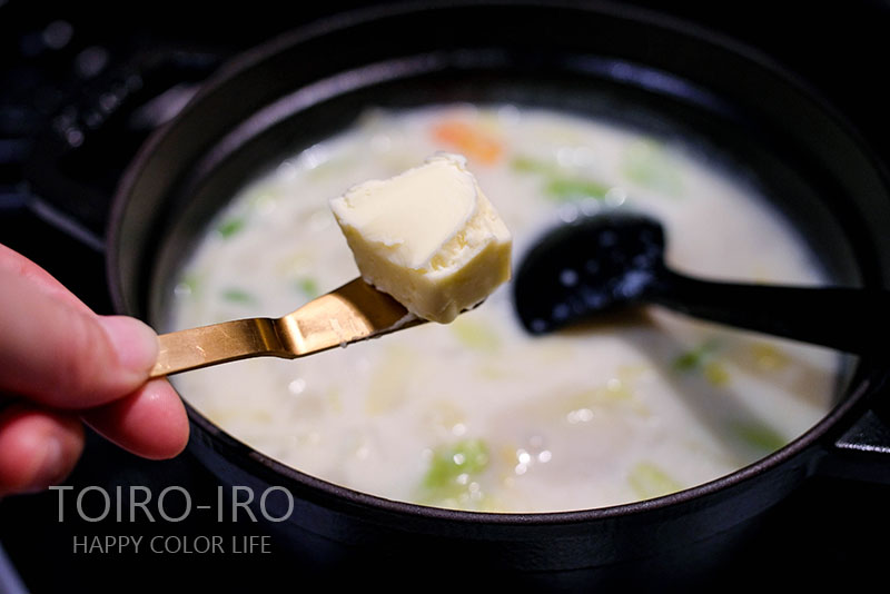 個人的にクラムチャウダーにはセロリやジャガイモを入れたい派です。ブロックベーコンも入れると、よりコクが出て美味しくなるのですが、ことごとく家になかった。笑