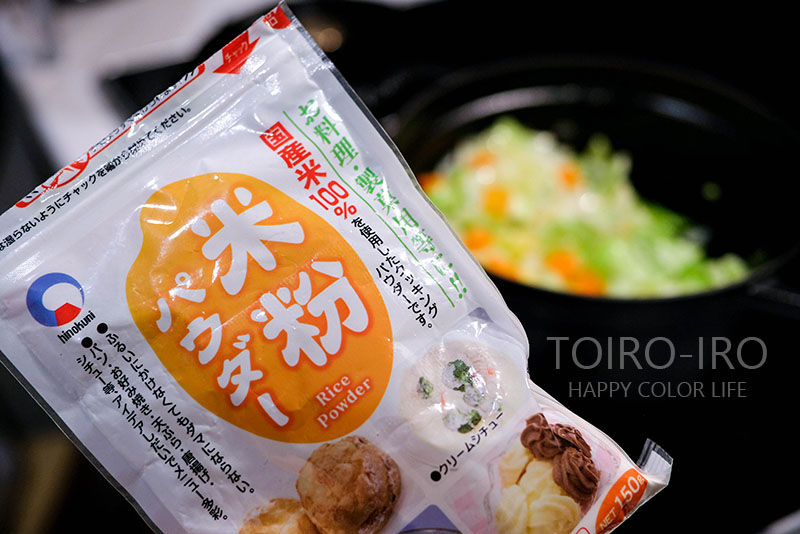 とろみ付けは米粉で。