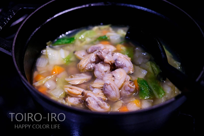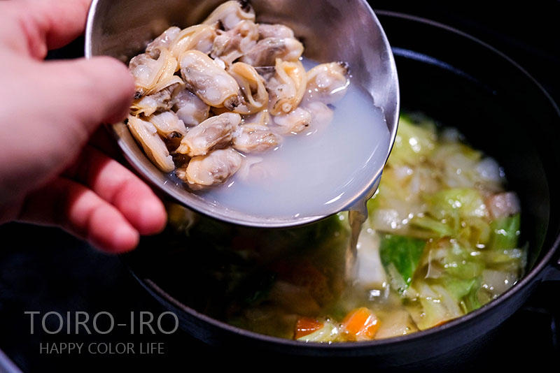 最後にアサリを加えることで、加熱しすぎずに済むためあさりが固くなったり小さくなりすぎたりしません^^