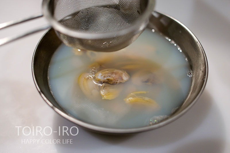 最初にアサリを酒蒸しにします。