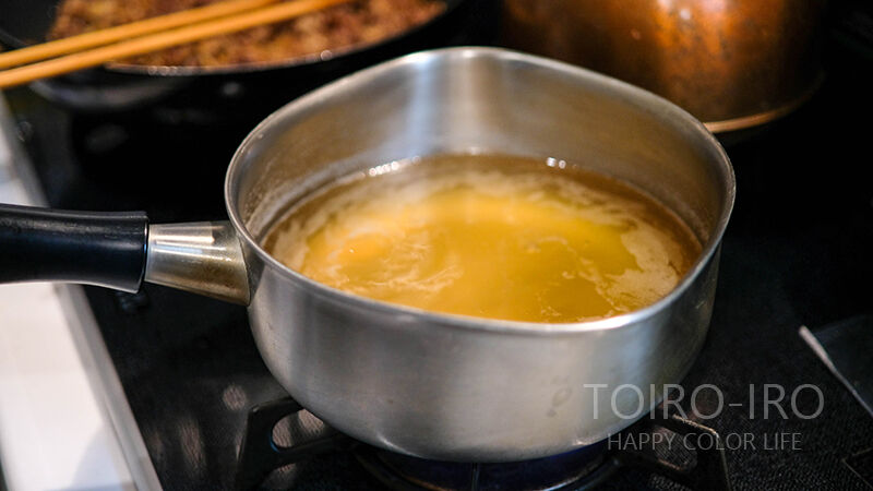 鍋にうどんつゆを準備して(白だしで簡単に作りますよ~)