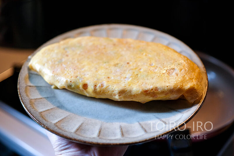 オムレツみたいに牛乳とか入れると破けやすくなるからここは入れずに。