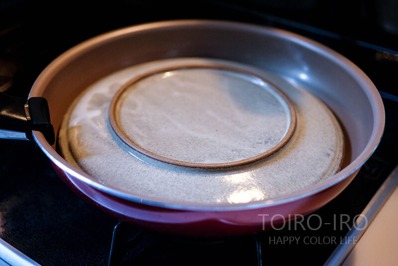 あとは片手でお皿を押さえた状態でエイヤ!!とフライパンをひっくり返すとこんな感じ!