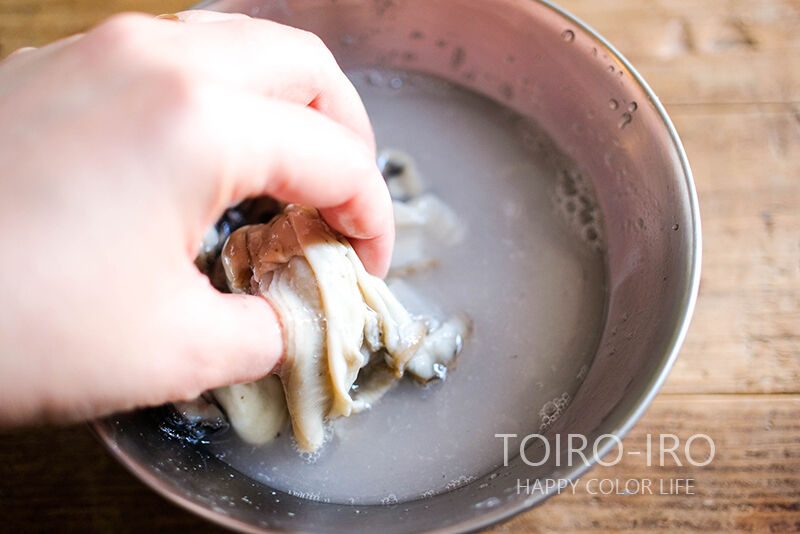 私、普段は大根おろしに絡めて汚れを取ってからさっと水洗いする方法が多いです。