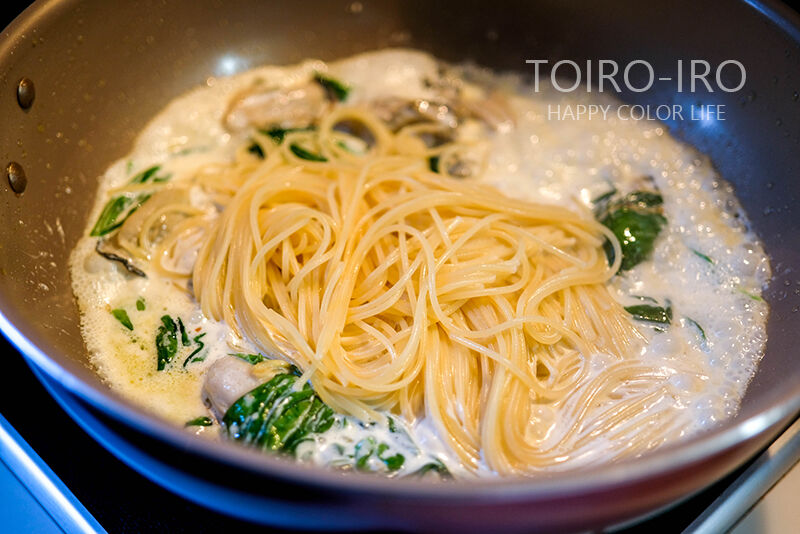 牡蠣のグラタンにしようか悩んで結局パスタにしたんだけど、こっちの方がホワイトソースを作る手間とかもかからないし簡単だから結果的によかったです。