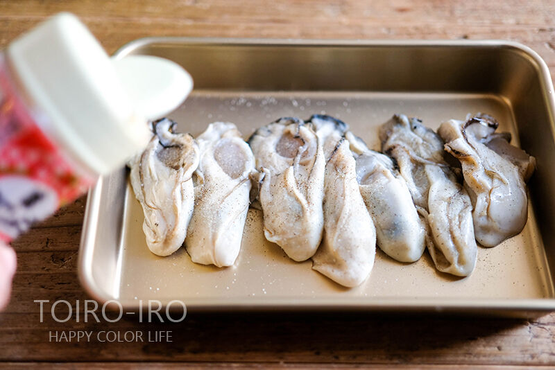 牡蠣には塩こしょうをしておきます。