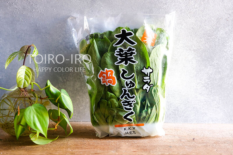 春菊は、水洗いしてから根元を少し切り落として、ざく切りにしてください^^