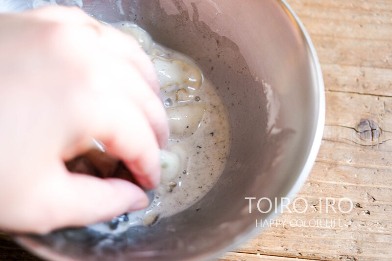 少し水を加えて優しく洗うと、