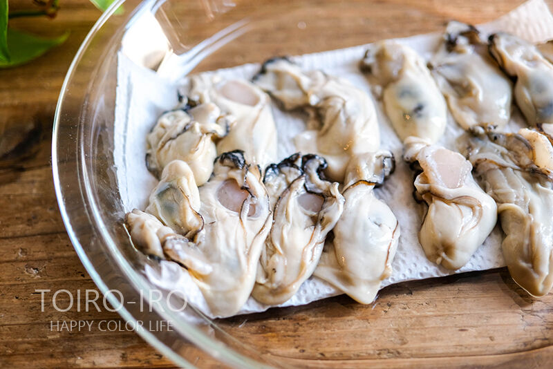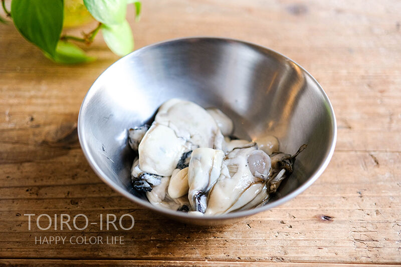 あまり何度も何度も水を換えてると、牡蠣の旨みさえも取ってしまいかねないのでササっとするのがポイントです。