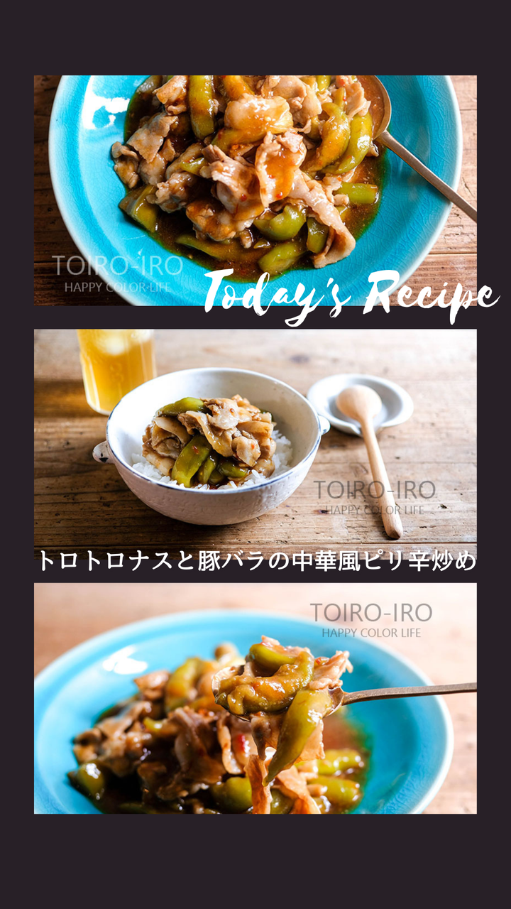トイロノートの今日のレシピは、トロトロナスと豚バラの中華風ピリ辛炒めです。