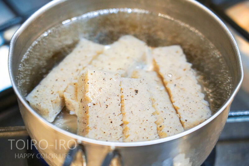 さつま揚げはさっと湯にくぐらせて油抜き!