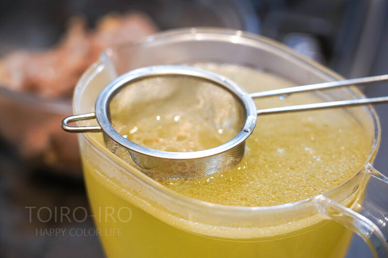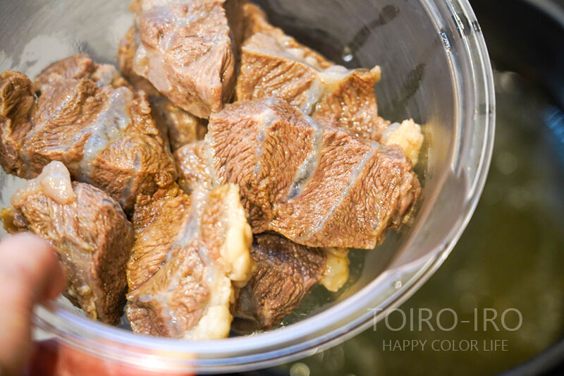 アクも出てるし、ひとまずお肉だけボウルに取り出します。