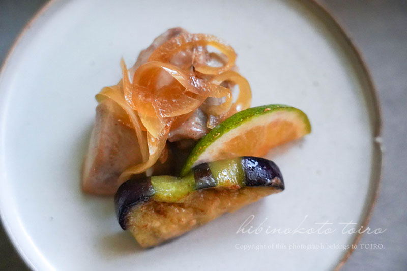一番下に敷き込んだタマネギに味がしみているので、それと一緒に鶏肉やナスをいただくと最高に美味しいんです。鶏肉には塩こしょうしてるから、味もぼやけない!