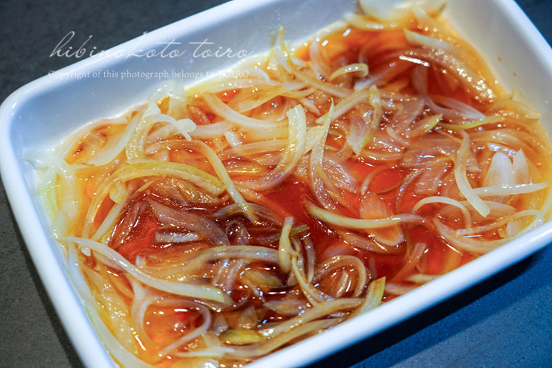 冷やすと漬け汁が煮こごりのように固まります。が、それも一緒に食べると美味しいです。