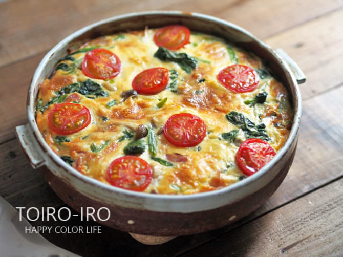 トイロノートの今日のレシピは、ほうれん草とベーコンの簡単キッシュです。