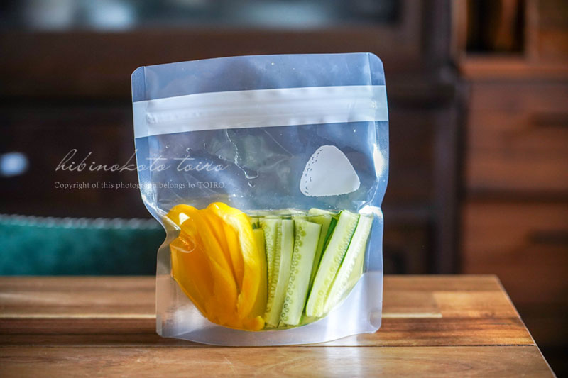 あ、今回は保存袋に入れて作りました。この袋が安定感があってしっかりしてるので愛用してます。今セールになってるからお買い得ですよ。