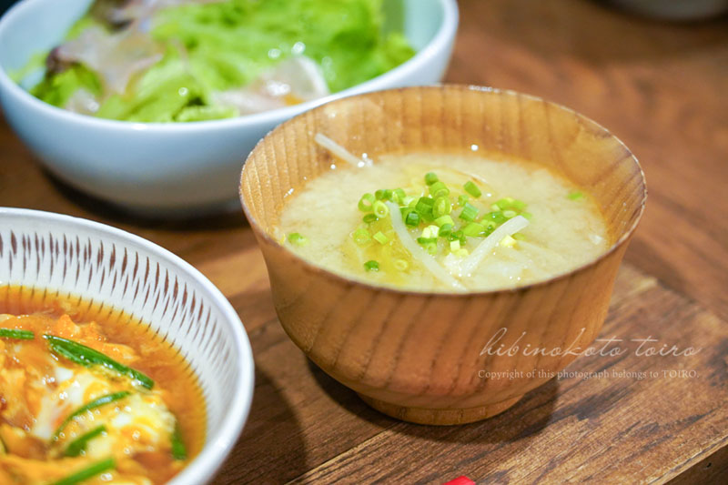 あとはもやしとキャベツとお揚げのお味噌汁!
