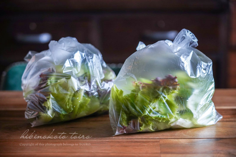最近この辺ではリーフレタス類がとても安く買えるので、いくつかまとめ買いして