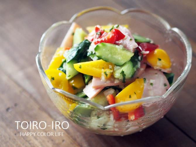トイロノートの今日のレシピは、デリ風サラダ★ハムと野菜のイタリアンマリネです。