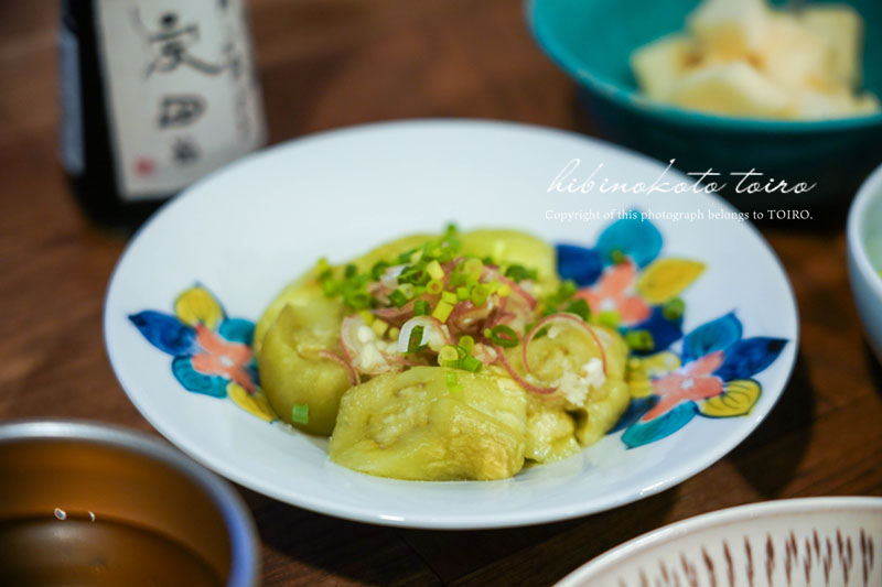 今日は焼きなすも食べたよ。魚焼きグリルでじっくり焼いて作ったから香ばしかった♪