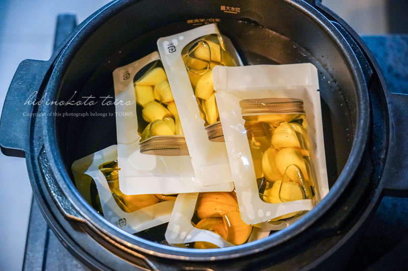 耐熱の袋以外にも耐熱の瓶、保存容器を使って作ってもOK。