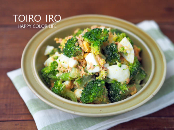 トイロノートの今日のレシピは、ゆでたまごとブロッコリーのゴマツナサラダです。