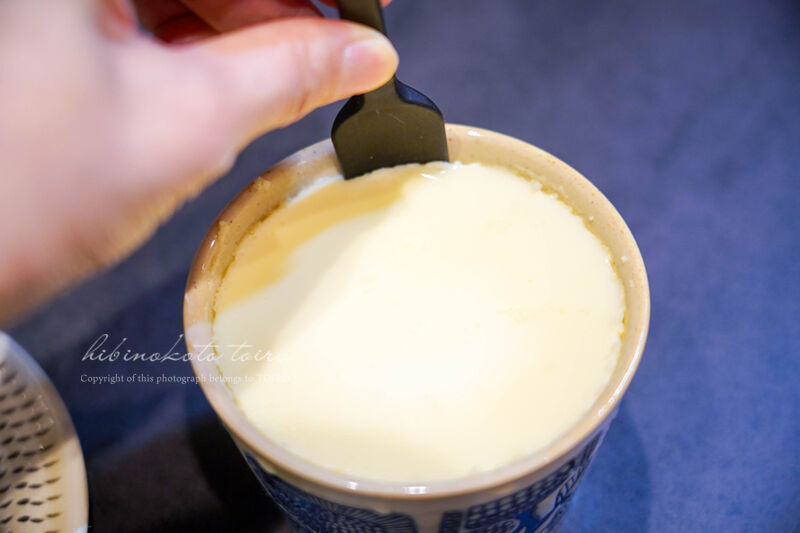 カラメルソースの入った容器は粗熱を取って、出来れば冷蔵庫で冷やしておいてください。