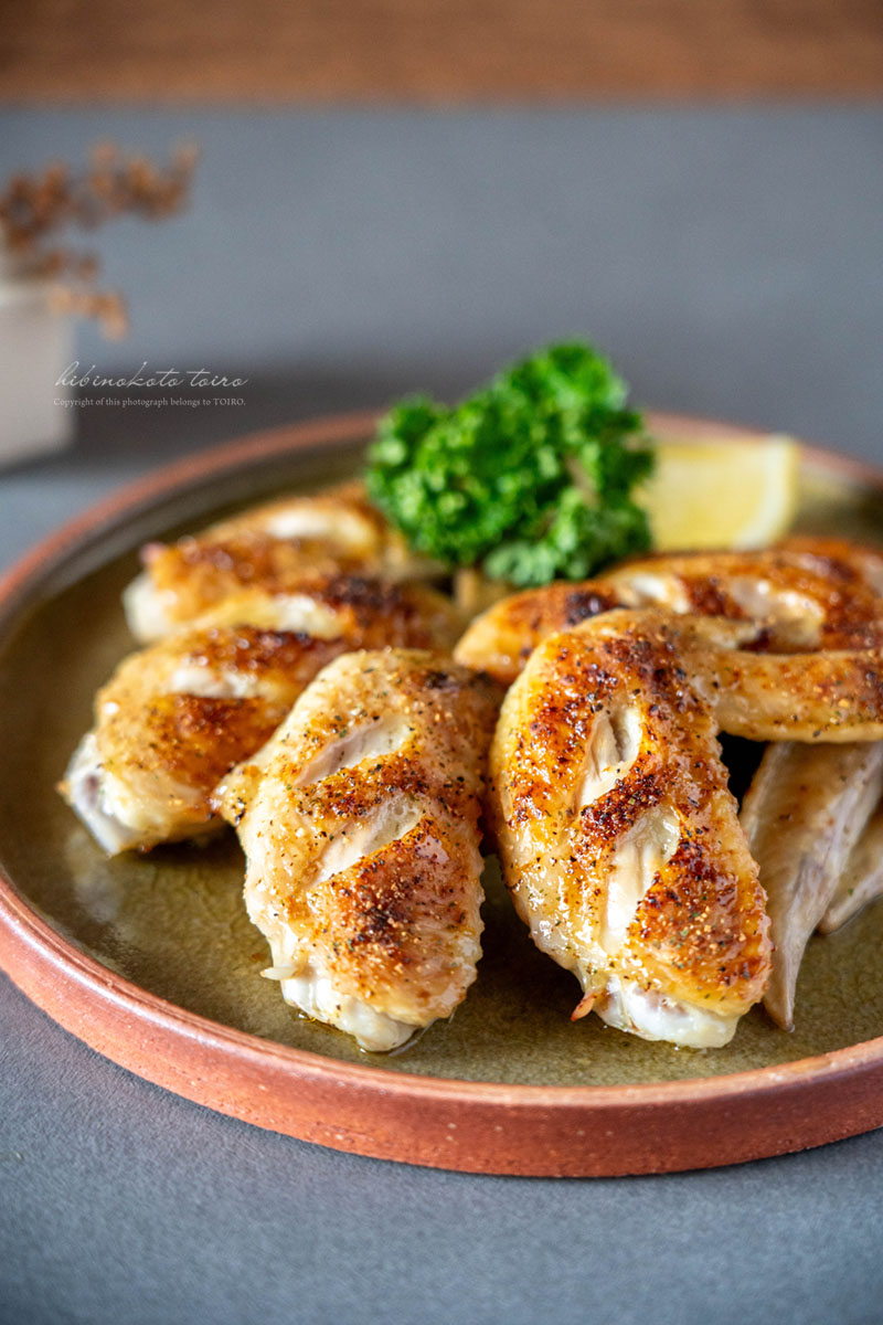 オーブンシートを敷いた上に手羽先を同じように並べて220〜250度に予熱して15〜20分。様子を見て時間は調整してね。