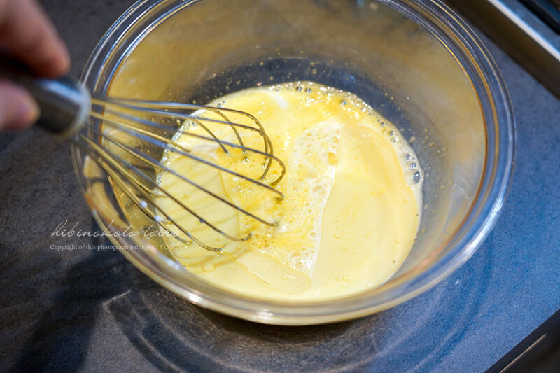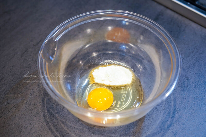 ボウルに 卵と砂糖 を入れてよく混ぜます。