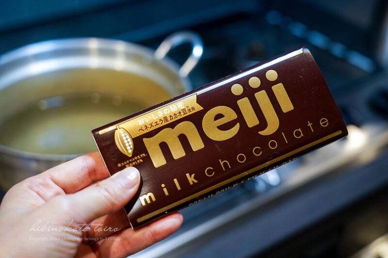 チョコはこれ。今の板チョコって一枚50gなんですよ〜!かなり減りましたね。