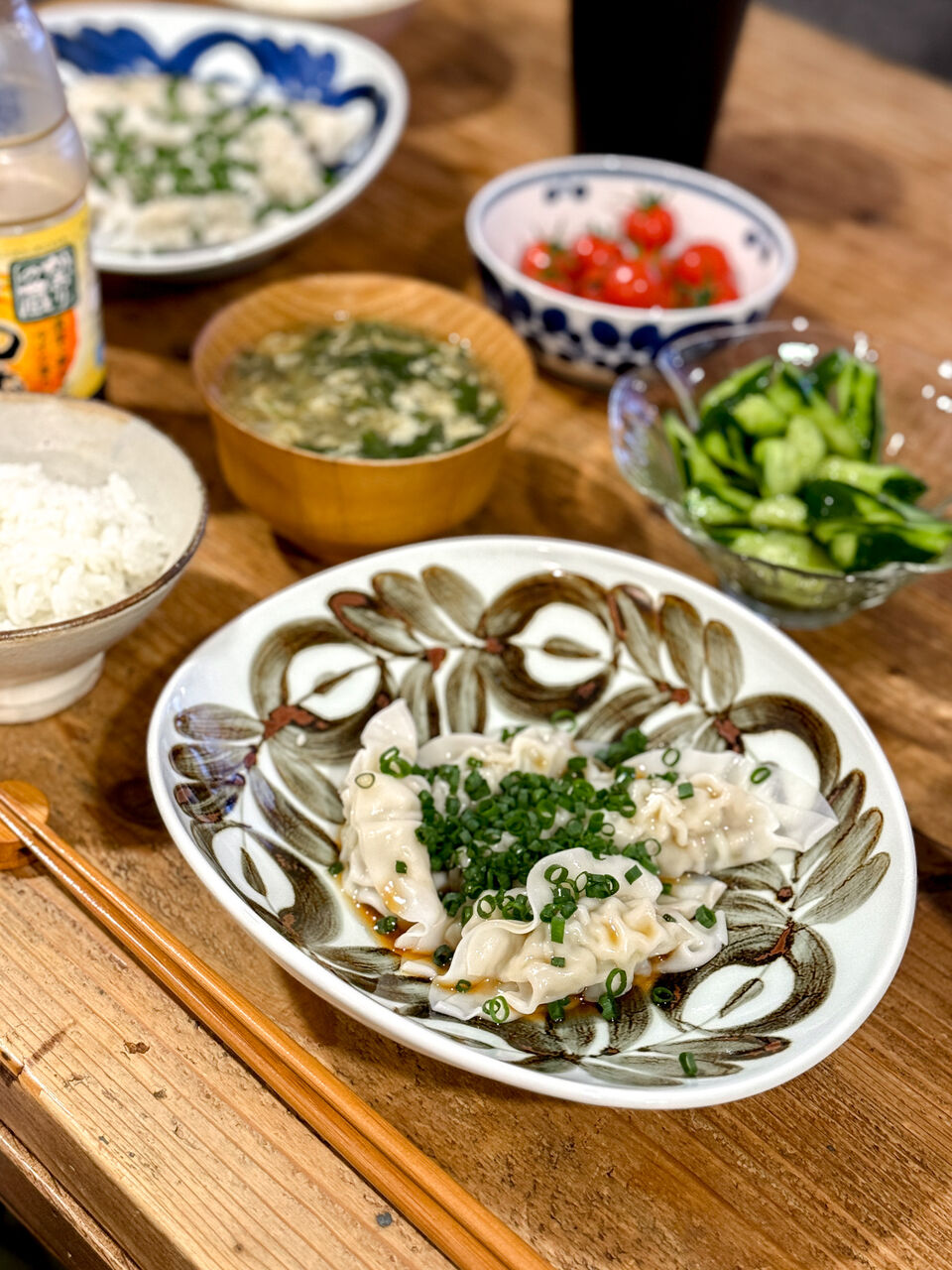 今夜は水餃子にかき玉汁、出汁きゅうり、ぷちぷよトマトの晩ごはんでしたっ!
