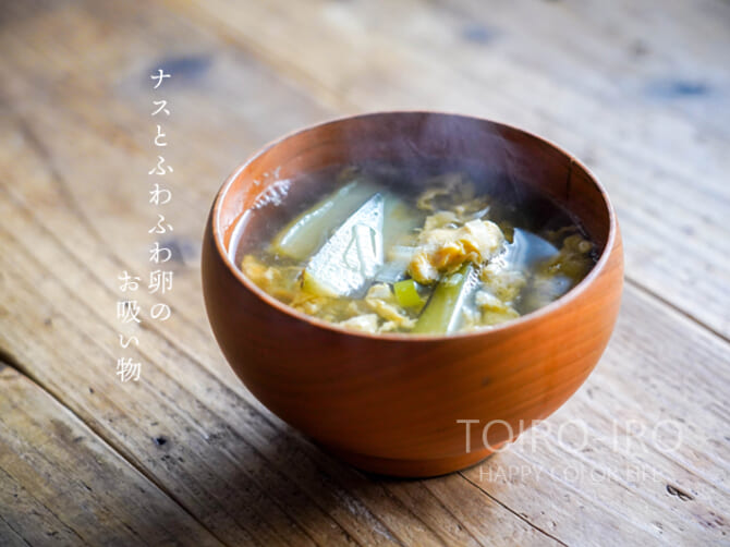 トイロノートの今日のレシピは、時短!ナスとふわふわ卵のお吸い物!