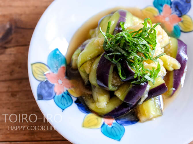 トイロノートの今日のレシピは、ごま香る♪レンジ蒸しナスのおひたしです。