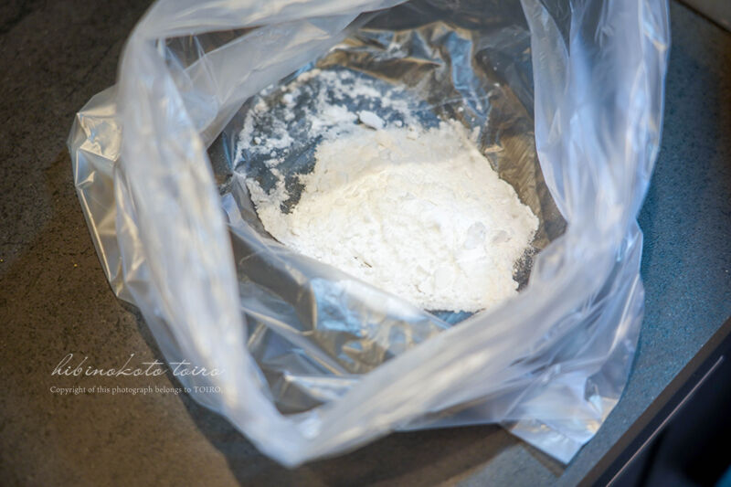 まず、ポリ袋に片栗粉を大さじ1ほど入れておきます。(後からでもよかったな)