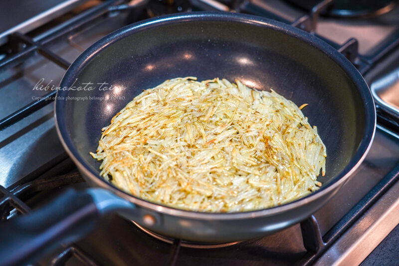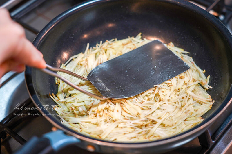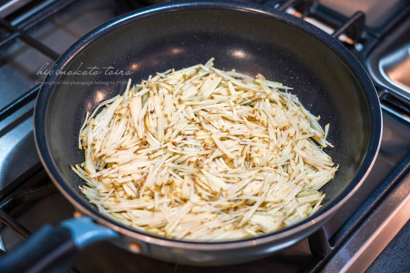 そこにじゃがいもを細切りにしたものを入れていきます。