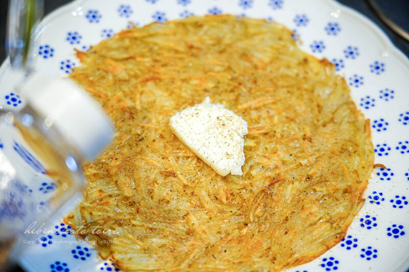 ヘラとかターナーとかで、ギュギュッと押さえると、よりカリッと焼けますよ〜^^